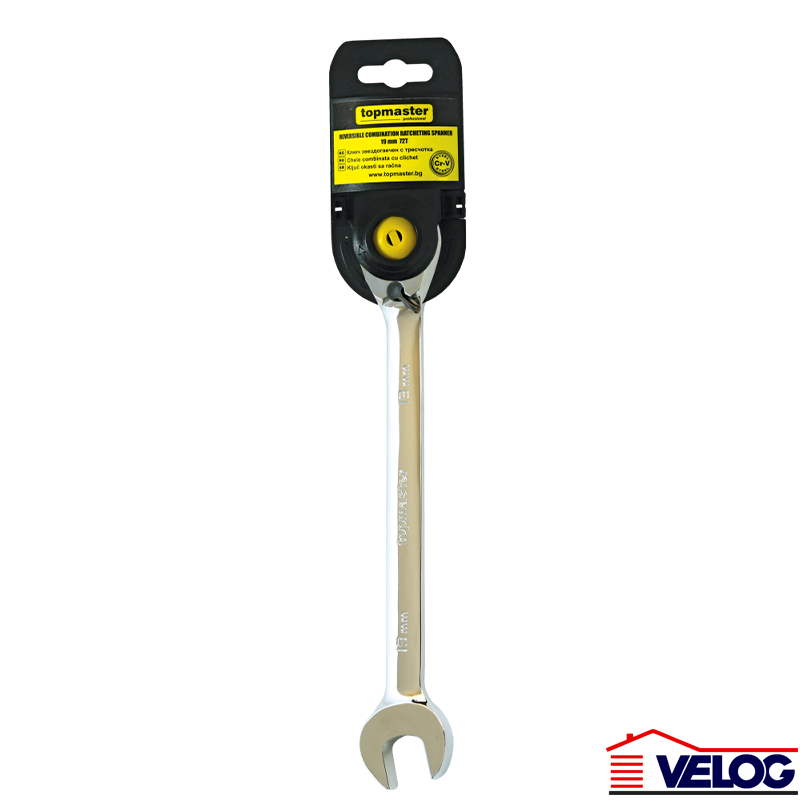 Opis proizvodaViljuškasto-okasti ključ sa čegrtaljkom, izrađen od hrom-vanadijum čelika. Glava ključa je nagnuta na 15° I udoban za rad na nepristupačnim mestima. Poliran I zaštićen od korozije. Čegrtaljka ima 72 zuba.