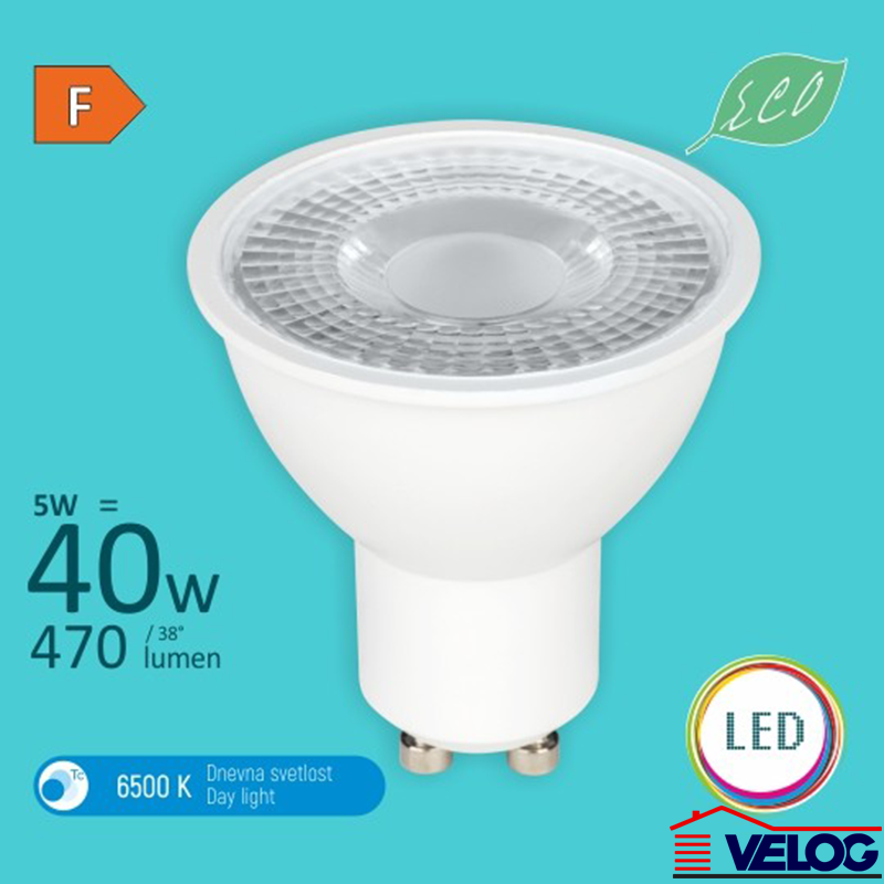 Karakteristike | • LED:SMD • Tip grla:GU10 • Dimenzija sijalice:Ø50 x H55mm • Oblik:MR16 • Radni napon:220~240V • Radna frekvencija:50/60 Hz • Nominalna struja proizvoda:50mA • Power factor:>0,5 • Snaga (procenjena):5W • Potrošnja elek. energije:5 Kwh /1000h • Energetska efikasnost 2019.:F • Ekvivalent (LED-Inkandes.):5W⇔40W • Lumen / Watt:80-90 • Lumen flux (nom.):470 (lm) • Temp. boje svetl.:6500 K (Dnevna svetl.) • Vreme trajanja zagrev. do .:< 1s • Vreme startovanja:≤ 0,5 s • Ugao rasipanja svetlosti (.:38º • CRI - indeks reprodukcije.:≥80(Ra) • Faktor odražavanja svetlo.:≥0,8% / 6000h • Faktor LLMF na kraju nom. .:70% • Faktor preživljav. sij. (.:≥0,9/6000h • Indeks konzistentnosti boj.:≤ 6 sdcm • IP zaštita:IP20 • Materijal:Termoplastika • Stepen električne zaštit.:II klasa • Životni vek:20.000 h na 25° C • Sadržaj žive (Hg):Hg=0.0 mg • Temperatura okoline:-20~ +40 °C • Dimabilnost:Ne • ON-OFF ciklus prekida:10.000 X • Ispravno odlag. nakon upot.:WEEE • Napomena:Usmerena sijalica • Upotreba u domaćinstvu:Da • Upotreba u potpuno zatvore.:Ne • Upotreba u vlažnim prosto.:Ne • Dizajn vrha sijalice:Mat |